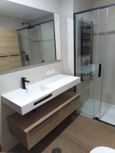 REFORMA INTEGRAL DE BAÑO REALIZADA EN ALBACETE CON AZULEJOS DE GRAN FORMATO. PAVIMENTO PORCELANICO RECTIFICADO. [...]